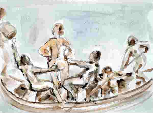 ![]() Die Abfahrt, Aquarell auf Bütten, 60 x 78 cm, 1999 |