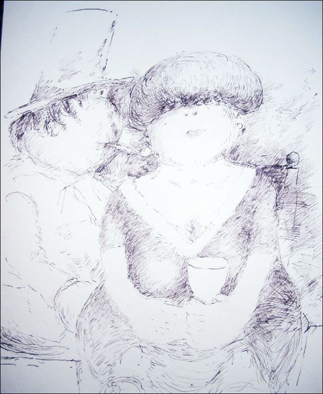 ![]() Das stille Paar, Feder, Bister, 50 x 40 cm, 2005 |